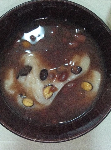 この前 豆餅入れてぜんざい食べました