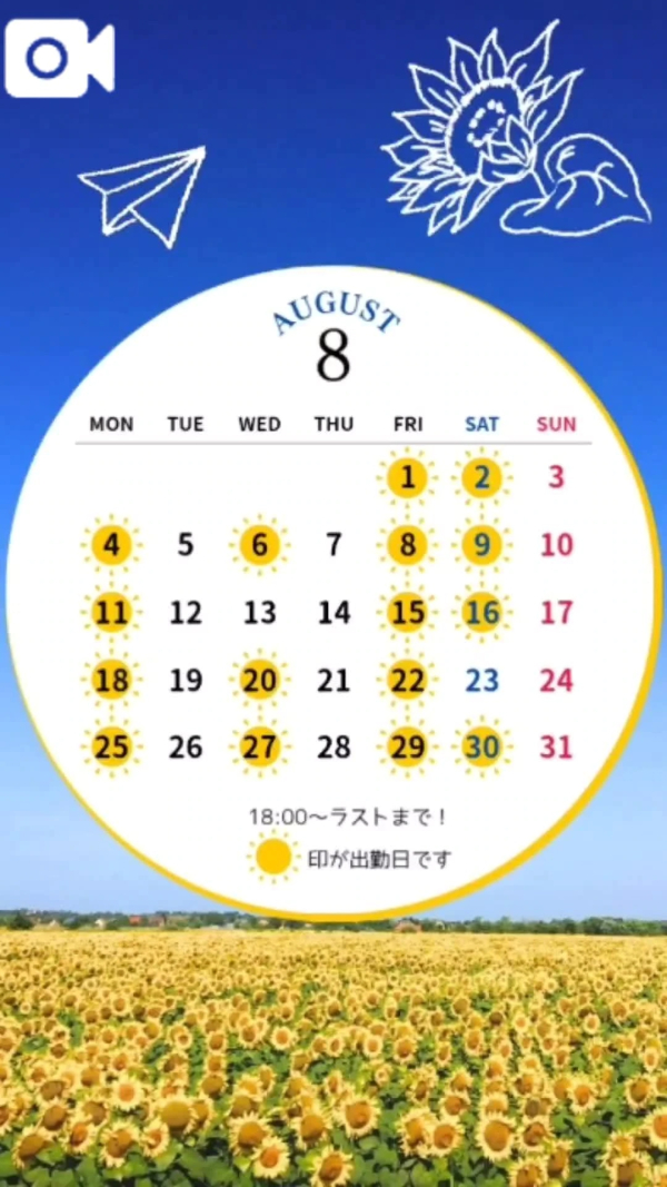 次回出勤は8/25(月)18:00〜です!