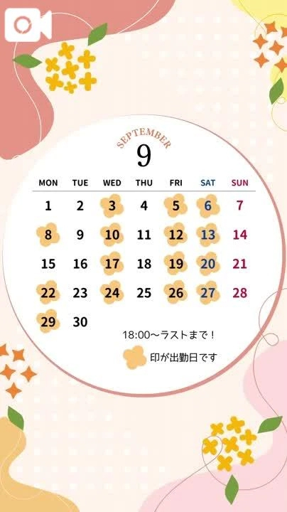 9月の出勤予定のお知らせみなさまおはようございます☀
