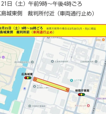 今日は広島城付近が一時通行止めね