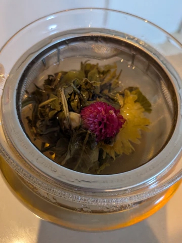 容器が小さくてちょっと窮屈そうだけど今まで飲んだジャスミン茶の中でいちばん美味しかった