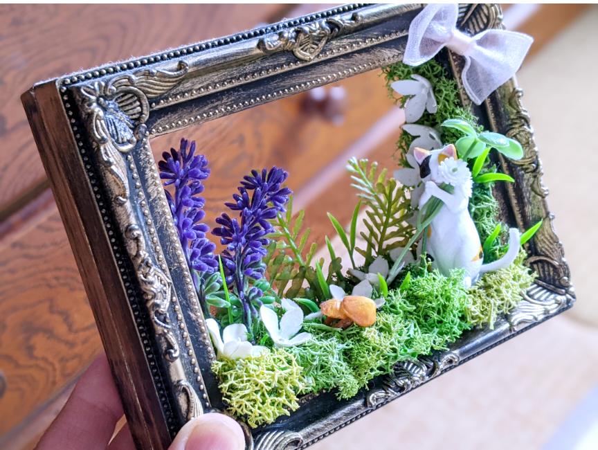 すきなことお花を育てたり樹脂粘土でなにか 作ってみたり造花で 花籠 リース※写真は※グルーガンで写真立て合わせたの(◕ᴗ◕✿)お料理したりもすきですし♡風景を眺めたり映画を観たりかな〜♪(◔‿◔)あ、保護猫さんのお世話もしてますฅ^•ﻌ•^ฅ月森琴音♡